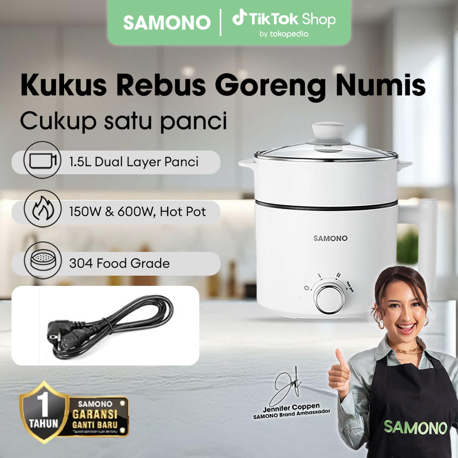 Samono Panci Listrik Hotpot Multi Cooker 1,5L Dengan Kukusan Tutup Kaca 150 Watt