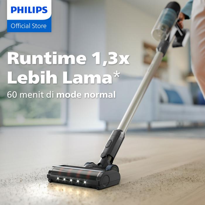 Dengan teknologi PowerCyclone 8, Philips Cordless Stick Vacuum Cleaner mampu menghilangkan lebih banyak debu dengan konsumsi baterai yang lebih efisien. Telah dirancang untuk ekstraksi debu yang tinggi, sambil memberikan waktu penggunaan hingga 60 menit dalam mode normal dan 15 menit dalam mode turbo.